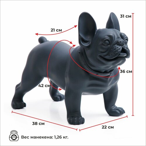 Харизматичный детализированный муляж взрослой собаки породы Французский Бульдог своей выразительной мордочкой привлекает внимание и вызывает умиление. Такой муляж взрослого стоящего песика станет незаменимым помощником для демонстрации и презентации одежды, амуниции, аксессуаров и других товаров для четвероногих друзей. Анатомическая точность исполнения, повторяющая нюансы телосложения, и натуральные пропорции делают бульдога максимально реалистичным и похожим на настоящую собаку. Поэтому такой серьезный, но ненастоящий пёс будет отличным реквизитом для участия в фотосессии, размещения в фотозоне, на выставках и других мероприятиях, связанных с животными.