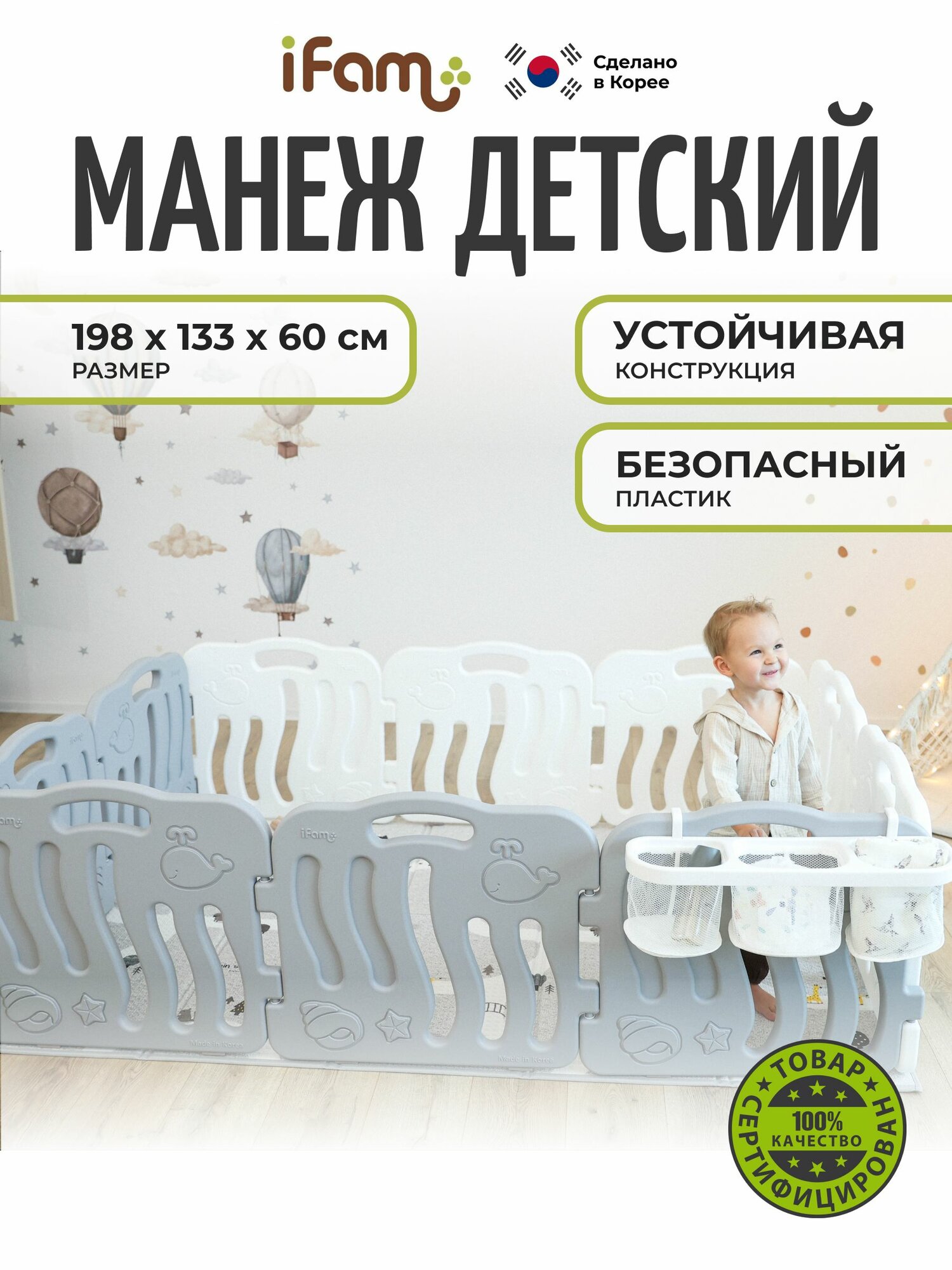 Купить Манеж детский игровой ограждение для детей IFAM Shell большой 198х133х60 см, белый/серый с доставкой по всей России.