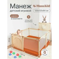 Купить Манеж детский игровой складной MOMKID с баскетбольным кольцом, для малышей и новорожденных, усиленный каркас с шариками для сухого бассейна, бежевый с доставкой по всей России.