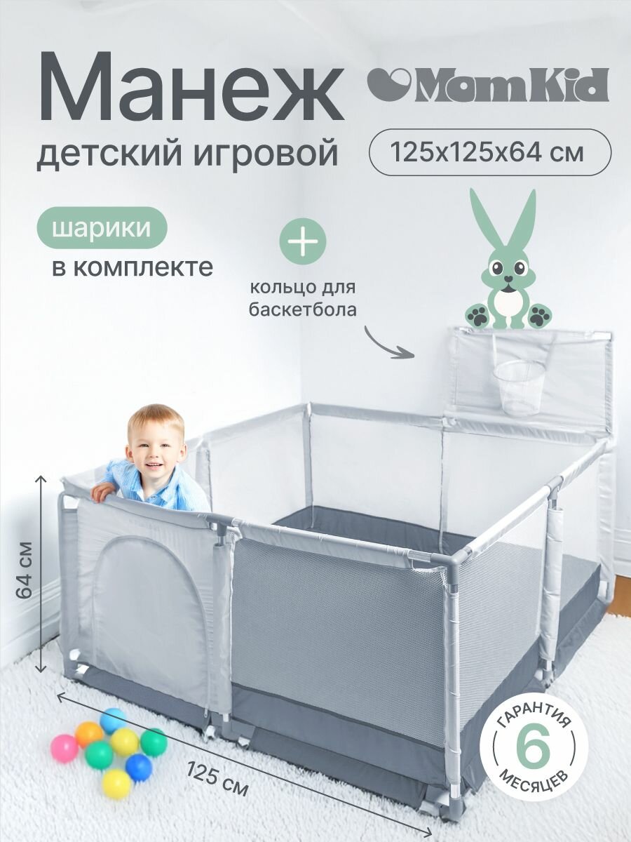 Детский игровой манеж складной MomKid с баскетбольным кольцом и шариками серый: сравнение цен, характеристики, фото, актуальное наличие и цены.