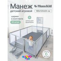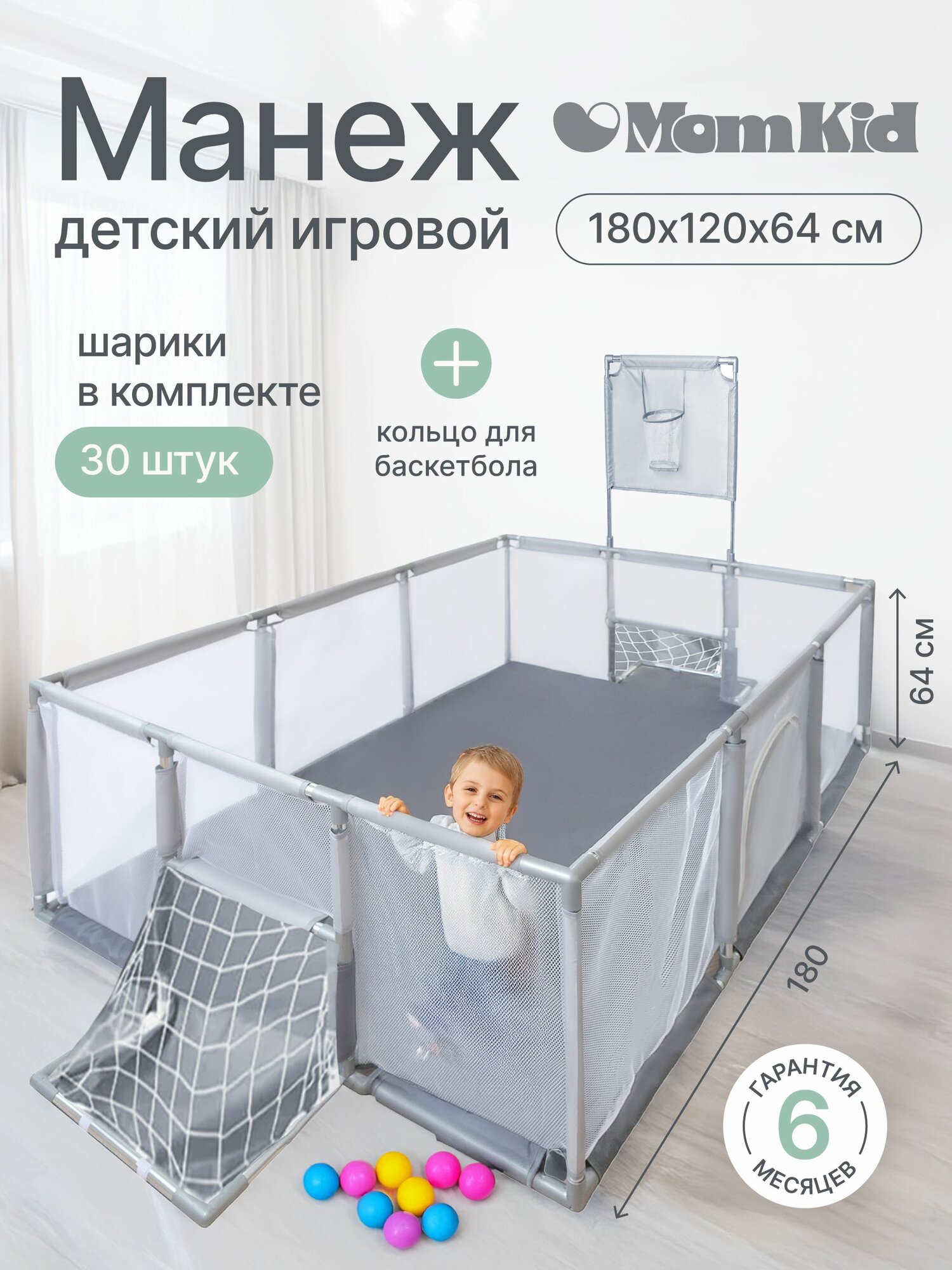 Манеж детский игровой складной MOMKID с баскетбольным кольцом и футбольными воротами, для малышей и новорожденных, усиленный каркас с шариками для сухого бассейна, серый: сравнение цен, характеристики, фото, актуальное наличие и цены.