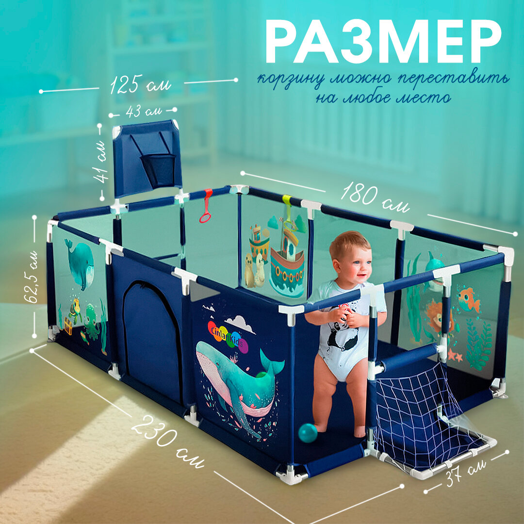 Манеж детский напольный с шариками, ручками и корзиной, 180х125х62 см, CINLANKIDS: сравнение цен, характеристики, фото, актуальное наличие и цены.