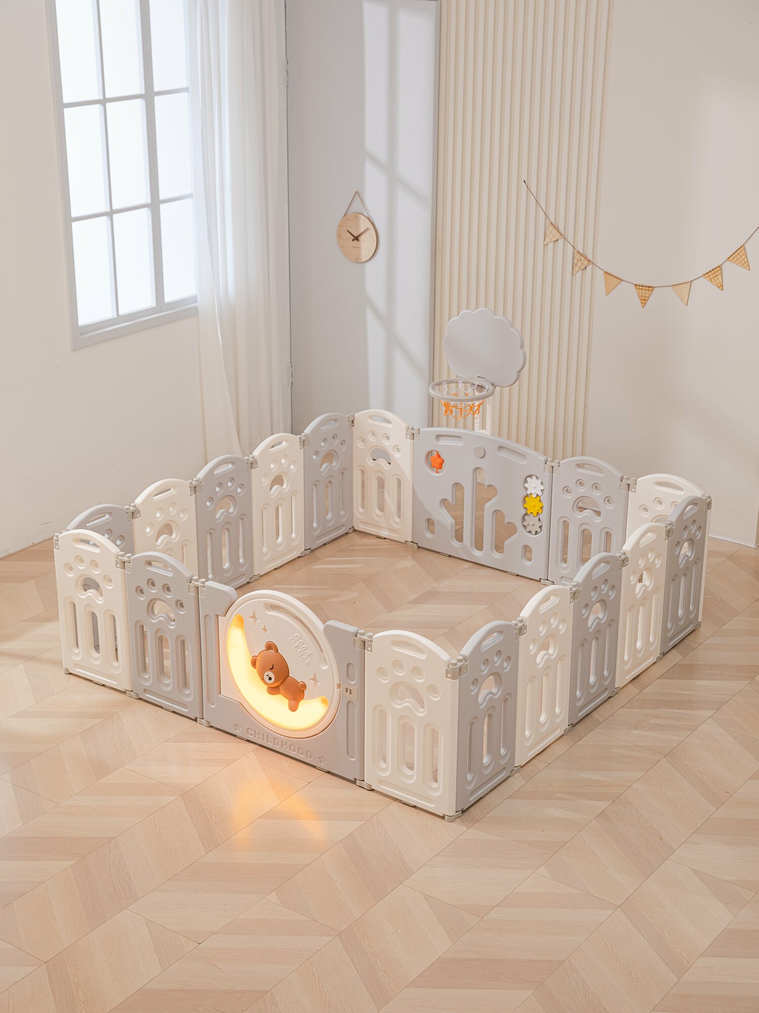 Купить Манеж детский UNIX Kids DeLuxe Grey 150 x 180 см пластиковый, с баскетбольной стойкой и ковриком SJJ с доставкой по всей России.