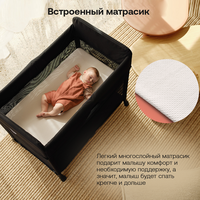 Складывается вместе с матрасиком (при использовании без вставного дна для новорожденных) Легко складывается 3 движениями Встроенный матрасик для комфортного сна