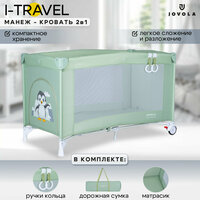 Купить Манеж кровать детский BP01P Jovola I-Travel для новорожденных, 0-36 месяцев, с матрасом, 1 уровень, зеленый с доставкой по всей России.