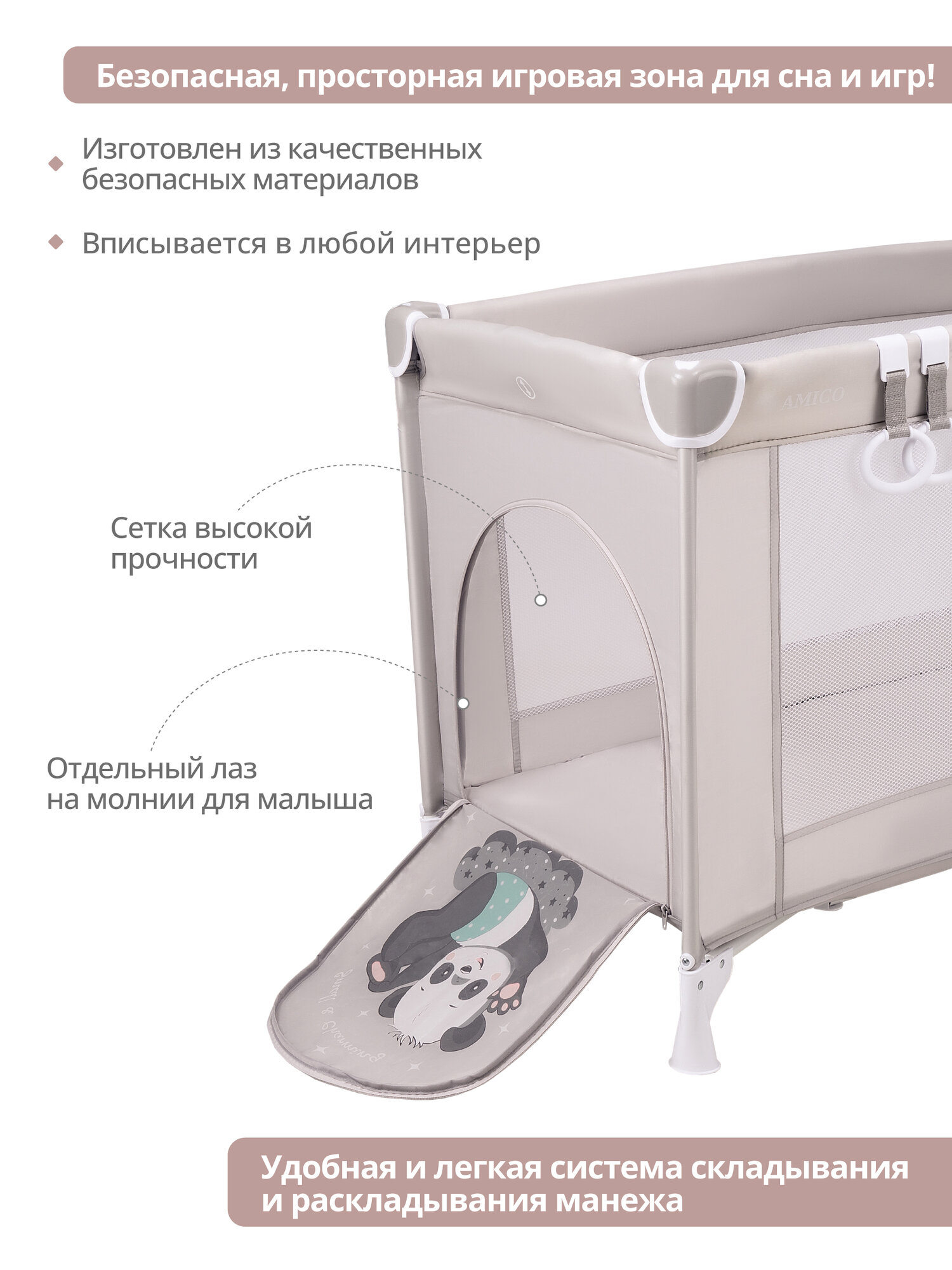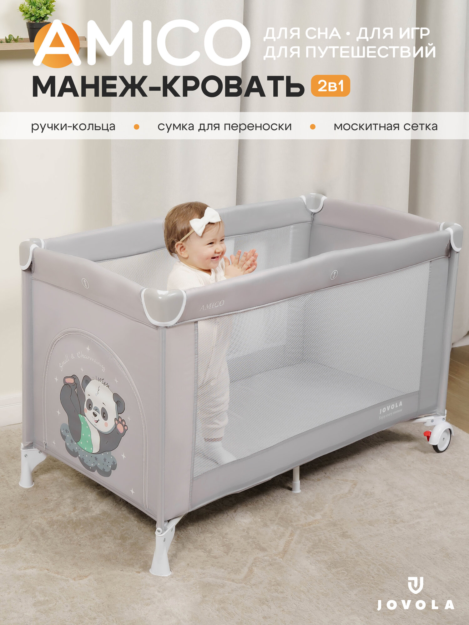 Манеж кровать детский JOVOLA AMICO , для новорожденных, с матрасом и москитной сеткой, складной, 1 уровень, светло-серый: сравнение цен, характеристики, фото, актуальное наличие и цены.