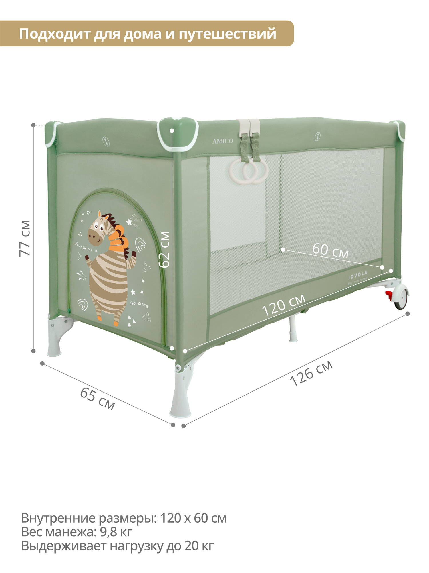 Манеж кровать детский JOVOLA AMICO , для новорожденных, с матрасом и москитной сеткой, складной, 1 уровень, зеленый: сравнение цен, характеристики, фото, актуальное наличие и цены.