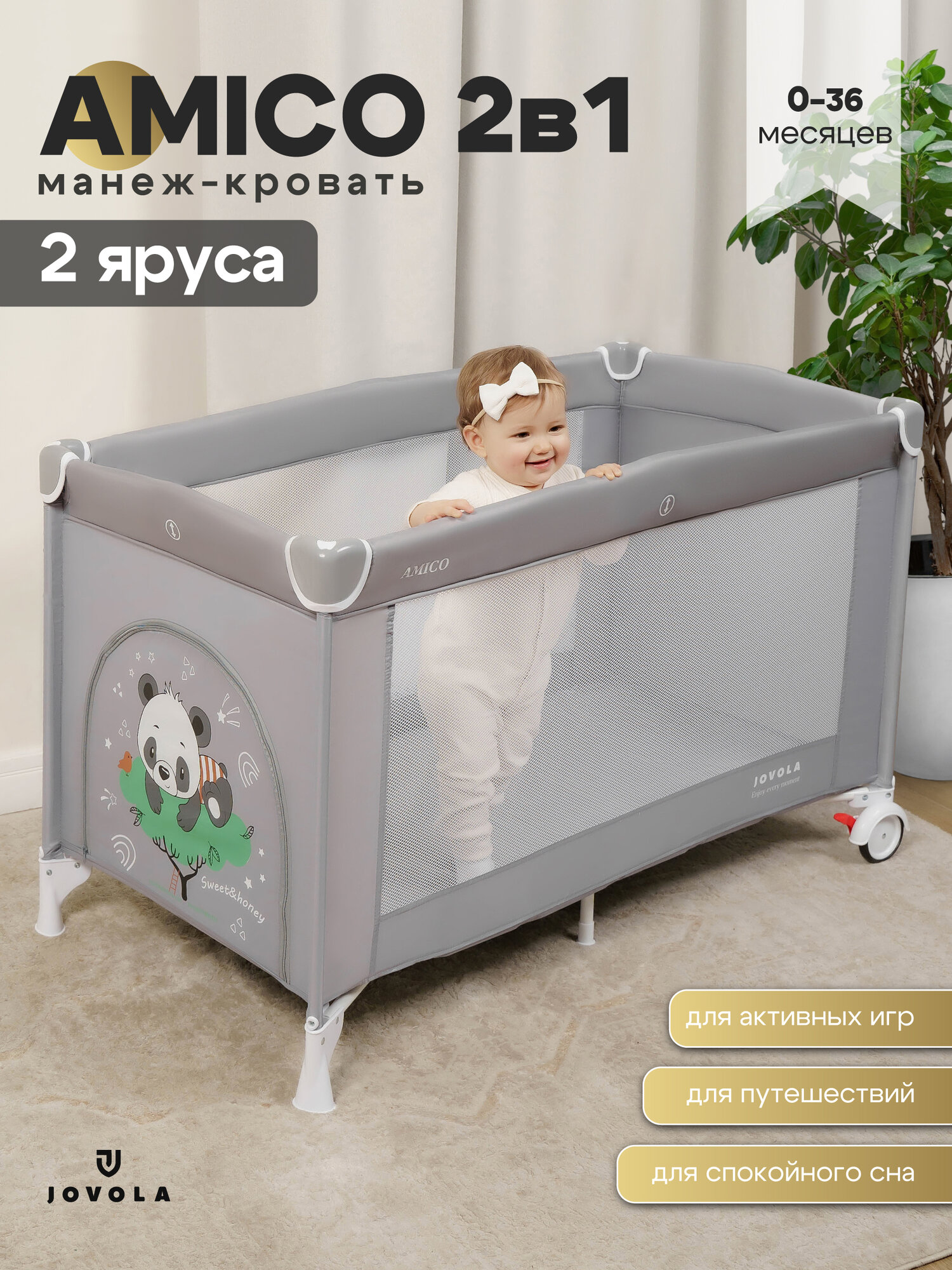 Купить Манеж кровать детский JOVOLA AMICO, для новорожденных с матрасом и москитной сеткой, складной, 2 уровня, 2 уровня, серый с доставкой по всей России. Манеж кровать детский JOVOLA AMICO, для новорожденных с матрасом и москитной сеткой, складной, 2 уровня, 2 уровня, серый: сравнение цен, характеристики, фото, актуальное наличие и цены.