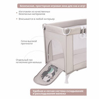 Удобный, функциональный, складной манеж-кровать 2 в 1 AMICO серии JOVOLA от Indigo станет надежной, безопасной игровой площадкой и комфортным местом для сна Вашему малышу. Имеет два уровня, предназначен для детей с рождения и выдерживает до 20кг. Для малышей в возрасте от 0 до 6 месяцев предусмотрен верхний уровень, который первое время может служить кроваткой. Максимальный вес второго уровня до 9 кг. Детский манеж для игр имеет жесткую основу и уже оборудован матрасом. Но стандартные размеры спального места прямоугольной кровати для новорожденных 120х60 см позволяют добавить в него дополнительный матрасик. Например арт. 4630018630027 ортопедический матрас в детскую кровать. Манеж игровой, передвижной для дома и путешествий имеет надежную и устойчивую конструкцию. С помощью двух колесиков его легко перемещать, а при необходимости колеса можно зафиксировать. Конструкция кровати для новорожденного быстро и компактно складывается, благодаря чему ее можно убрать или взять с собой в поездку или на природу. В комплект кроватки с манежем входит дорожная сумка-чехол для переноски, а также москитная сетка для использования на улице: в саду или на даче. Манеж напольный большой изготовлен из качественных материалов. Мягкие бортики, ограждения и закругленные накладки по углам защитят ребенка от ударов. Через сетчатые стенки барьера Вы всегда можете присматривать за малышом. А когда кроха подрастет, он сможет сам забираться в него через удобный боковой лаз на молнии с яркой веселой аппликацией в виде зверушек. Прицепные кольца можно использовать как подвесы для игрушек, каруселей, погремушек, а когда малыш подрастет, он сможет подтягиваться с их помощью и вставать на ножки. Специальный замок-фиксатор защитит от случайного складывания. Несколько вариантов универсальных цветовых решений позволят подобрать подходящий как для мальчика, так и для девочки. Товар сертифицирован. Будьте внимательны! Обязательно следуйте инструкции при сборке И складывании, иначе можете повредить фиксаторы!