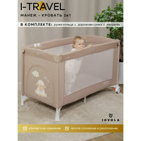 Купить Манеж кровать детский Jovola I-Travel BP01P для новорожденных, 0-36 месяцев, с матрасом, 1 уровень, бежевый с доставкой по всей России.