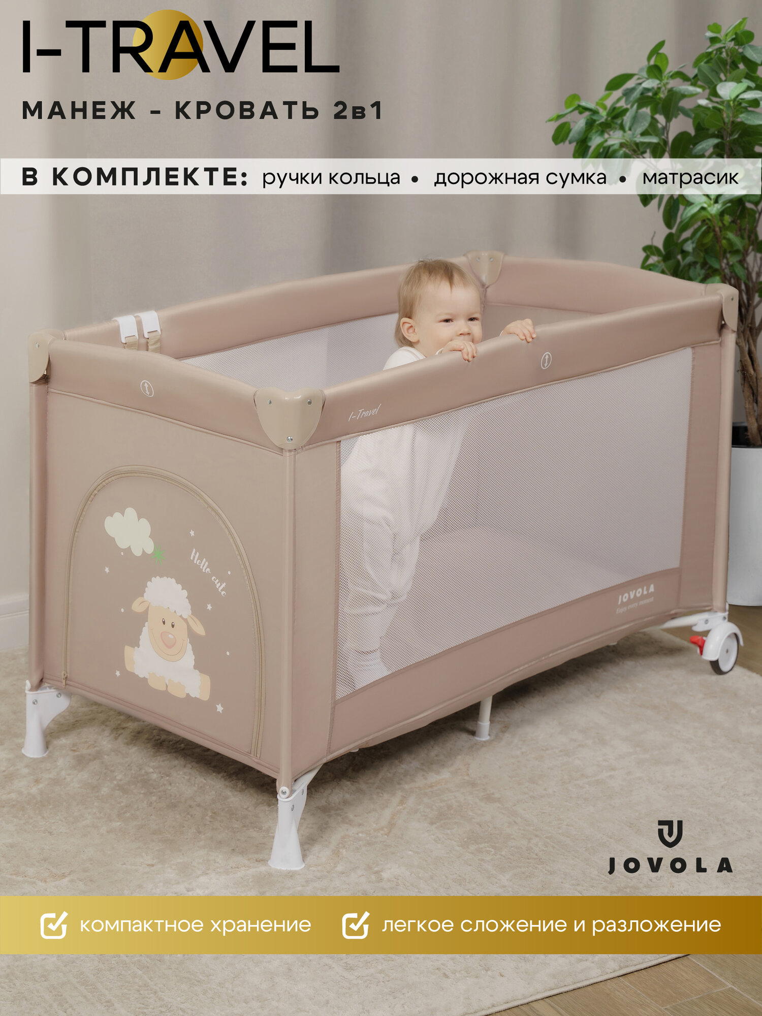 Манеж кровать детский Jovola I-Travel BP01P для новорожденных, 0-36 месяцев, с матрасом, 1 уровень, бежевый: сравнение цен, характеристики, фото, актуальное наличие и цены.