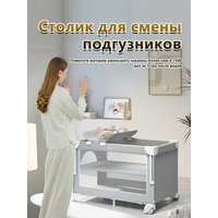 Манеж, кровать и кроватка приставная 3 в 1, 2 уровня, с рождения, складная с сумкой переноской, серый