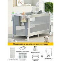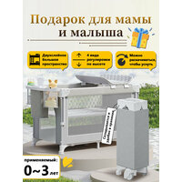 Купить Манеж, кровать и кроватка приставная 3 в 1, 2 уровня, с рождения, складная с сумкой переноской, серый с доставкой по всей России.