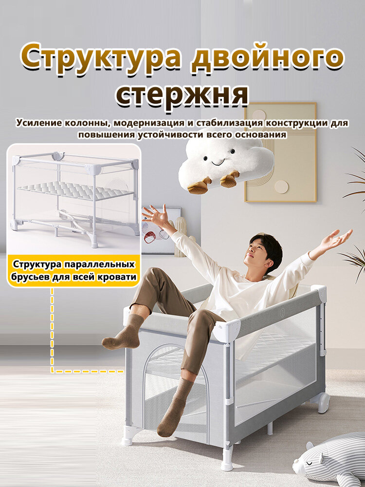 Манеж, кровать и кроватка приставная 3 в 1, 2 уровня, с рождения, складная с сумкой переноской, серый: сравнение цен, характеристики, фото, актуальное наличие и цены.