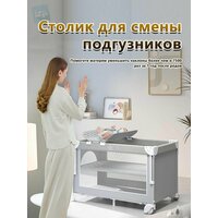 Купить Манеж, кровать и кроватка приставная 3 в 1, 2 уровня, с рождения, складная с сумкой переноской, темно-серый с доставкой по всей России.