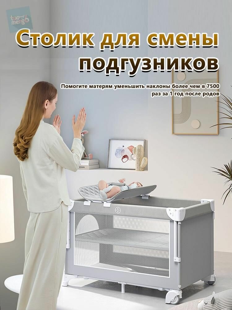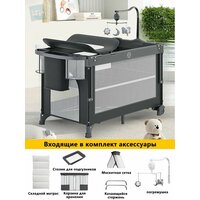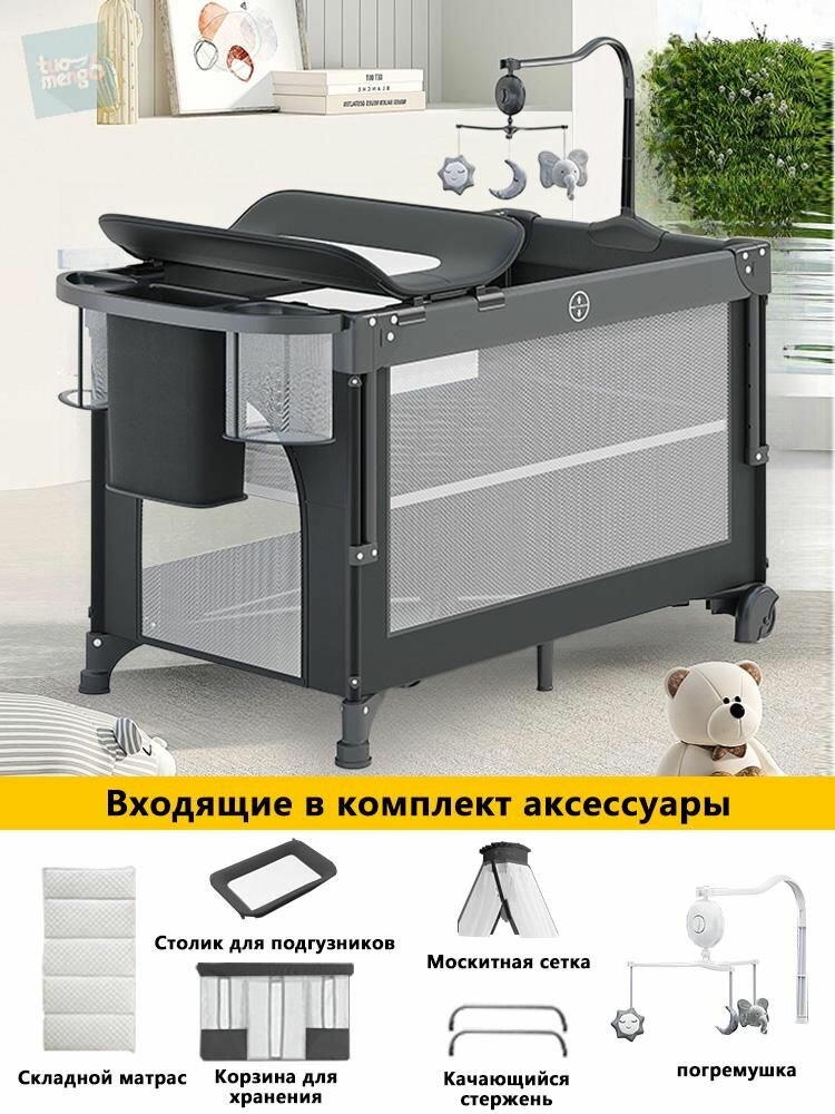 Манеж, кровать и кроватка приставная 3 в 1, 2 уровня, с рождения, складная с сумкой переноской, темно-серый: сравнение цен, характеристики, фото, актуальное наличие и цены.
