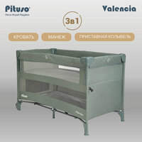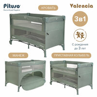 Двухуровневый манеж Pituso Valencia с функцией приставной колыбели создает безопасное, удобное и комфортное пространство, где ребенок может отдыхать и весело играть вместе с любимыми игрушками. Благодаря второму уровню манеж можно использовать вместо кроватки с самого рождения малыша. Манеж можно установить рядом с кроватью родителей и благодаря опускающемуся бортику использовать как приставную кровать. Кроватка надежно крепится к родительской кровати с помощью ремней.