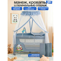 | Комплектация | Кроватка-манеж для новорожденного - 1 шт; Съемный балдахин - 1 шт; Основа для второго уровня - 1 шт; Каркасные трубки для второго уровня - 4 шт; Дуга с игрушками - 1 шт; Матрас - 1 шт; Пеленальный столик - 1 шт |