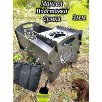 Мангал многоразовый с рисунок медведь. Мангал в комплекте идет с подставкой и сумкой. Мангал сборный - разборный , складной. многоразовый из стали 3 мм состоит из 5 частей , при этом очень быстро собирается и разбирается . Можно переносить в собранном виде. Мангал разборный с подставкой, подставка выполнена из стали 3мм, разборная. На подставку можно расположить готовые шампура с мясом так и тарелку с мясом или овощами. Подставку также можно перевернут во внутрь мангала, на ней можно подогреть чайник, поставит казан, сковородку для приготовлении пищи. Сумка для мангала выполнена из износостойкого, водооталкивающего материала оксфорд плотностью 1680D. Сумка имеет двусторонний замок с 2 бегунками. Сумку можно мыть. У сумки достаточно длинные ручки, что позволяет переносить мангал на плече или в руках. Компактный при хранение и отлично помещается в багажник автомобиля . Для сборки не потребуется инструмента, толщина 3 мм не деформируется при долгой эксплуатации . Мангал складной отлично подходит для кемпинга, туризма, можно взять на природу , дачу . Мангал выполнен с помощью лазерной резки которая исключат заусенцы делает ровные края и кромки . Подходит для выезда на пикник, , озеро для жарки шашлыка. На мангале помещается 7 шампуров и решетка . Идеальная глубина 15 см для углей равномерное распределение жара по мангалу. Мангал многоразовый не ведет при нагреве и прослужит долго. Отличный подарок мужчине Отличный подарок ко дню рождения, на 23 февраля День защитника отечества, юбилей, новоселье. Новый год, парню и дедушке. Размер в собранном виде, высота 25 см (с ручкой 30 см), ширина 30 см , длина 55 см .