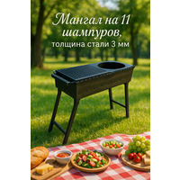 Мангал 600 мм складной c подказанником и полкой-решёткой, толщина 3 мм, на 11 шампуров: сравнение цен, характеристики, фото, актуальное наличие и цены.