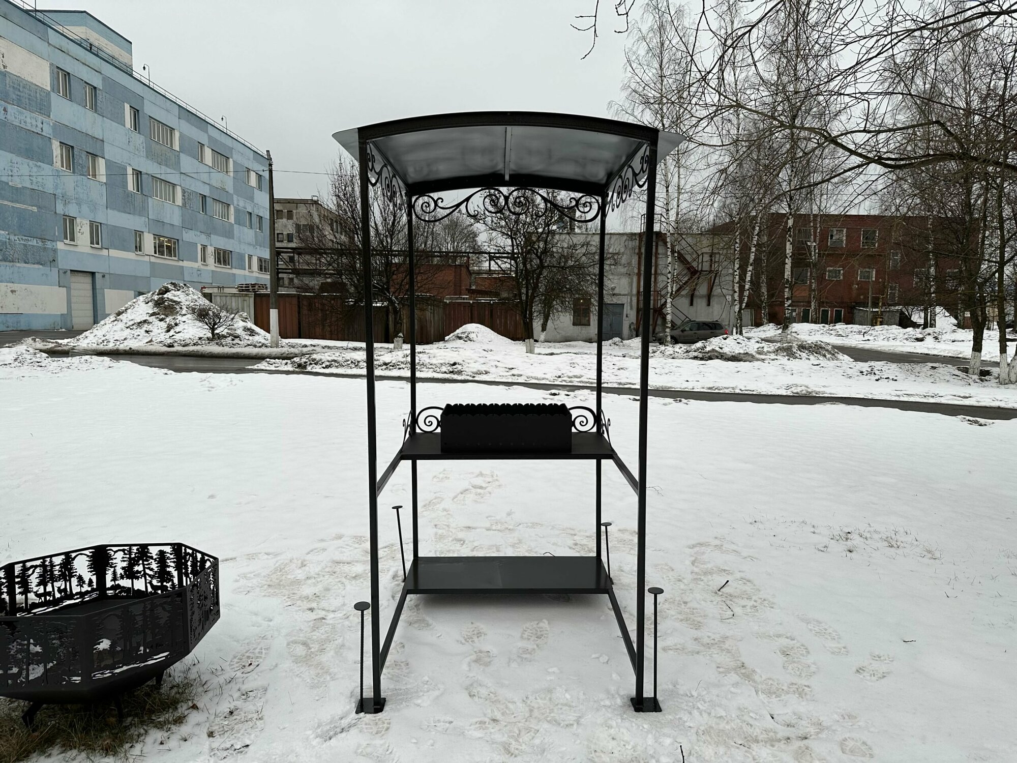 Мангал-беседка компакт с крышей. Подходит для установки на территории загородного дома или дачи. Общие габариты мангала — 1000х1200х2000. Модель покрыта термостойкой эмалью, которая выдерживает высокие температуры без ущерба первоначальному внешнему виду. Отличный вариант беседки по приятной цене, чаша 600х360х170мм, имеет пятки для крепления с бетонному или другому основанию.