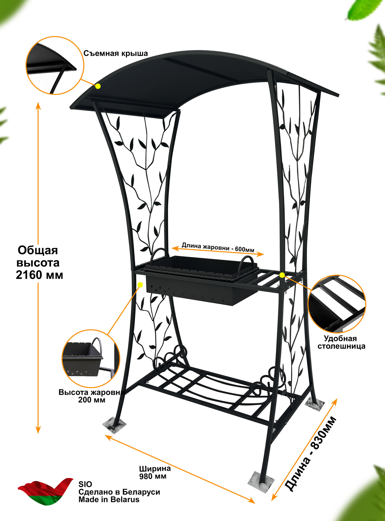 | Конструктивные особенности | дровница, крыша, полки, с ручкой, столик |