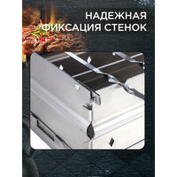 Мангал разборный со складным дном и ребрами жесткости Forester удобен для приготовления пищи на древесных углях. Размеры его рабочей поверхности составляют 45 х 25 см.