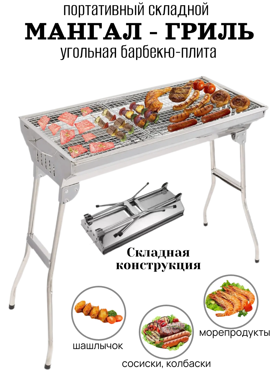 Мангал/ Гриль для барбекю жаропрочный, нержавеющая сталь, складной, с ручками, серебристый: сравнение цен, характеристики, фото, актуальное наличие и цены.