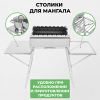Мангал-гриль KOLUNDROV Дипломат из нержавейки с крышкой, полками, решеткой и шампурами, переносной уличный, походная кухня складная для кемпинга дачи