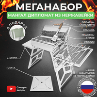Купить Мангал-гриль KOLUNDROV Дипломат из нержавейки с крышкой, полками, решеткой и шампурами, переносной уличный, походная кухня складная для кемпинга дачи с доставкой по всей России. Мангал-гриль KOLUNDROV Дипломат из нержавейки с крышкой, полками, решеткой и шампурами, переносной уличный, походная кухня складная для кемпинга дачи: сравнение цен, характеристики, фото, актуальное наличие и цены.