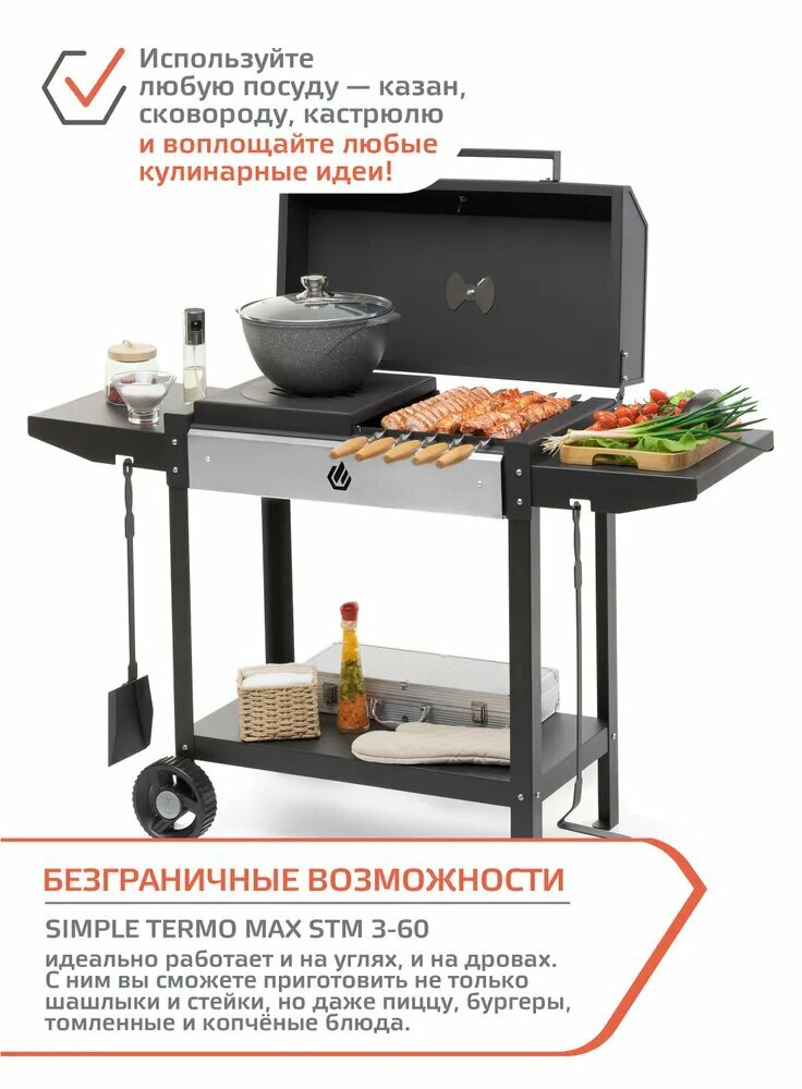 Мангал гриль с крышкой барбекю для дачи с решеткой гриль и подставкой под казан GRATAR Simple STM 3-60: сравнение цен, характеристики, фото, актуальное наличие и цены.