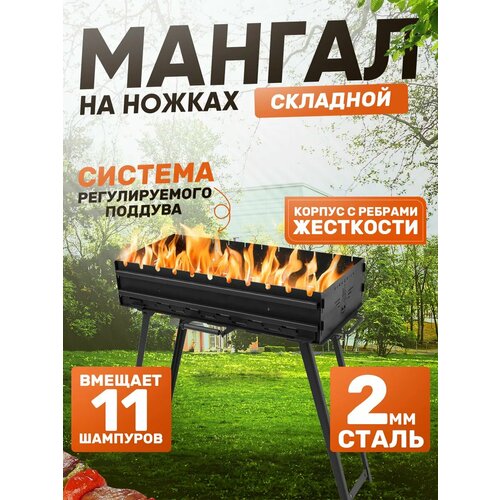 Купить Мангал Helicon, усиленный, 11 пазов, на ножках, с регулировкой, складной, 65 см с доставкой по всей России.