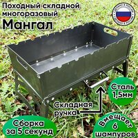Мангал многоразовый складной с ручкой на 6 шампуров (3-5 человек), сталь 1,5 мм с сумкой чехлом: сравнение цен, характеристики, фото, актуальное наличие и цены.