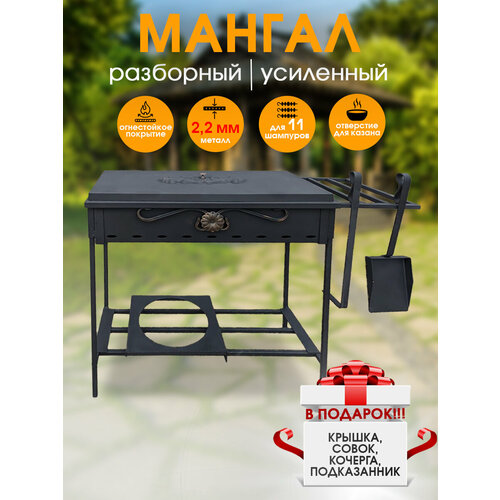 Купить Мангал разборный 2,2 мм, с подказанником, крышкой, совком и кочергой с доставкой по всей России. Мангал разборный 2,2 мм, с подказанником, крышкой, совком и кочергой: сравнение цен, характеристики, фото, актуальное наличие и цены.