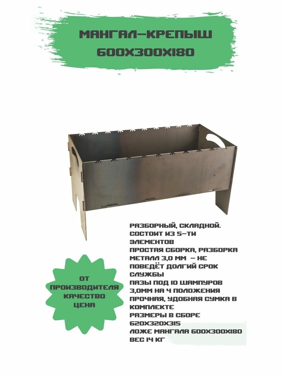 Мангал разборный Крепыш 600х300х180: сравнение цен, характеристики, фото, актуальное наличие и цены.