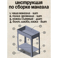 Мангал изготовлен из цельного листа стали толщиной 5 мм, что обеспечивает его прочность и долговечность. Благодаря этому, мангал способен выдерживать высокие температуры и не деформироваться при использовании.
