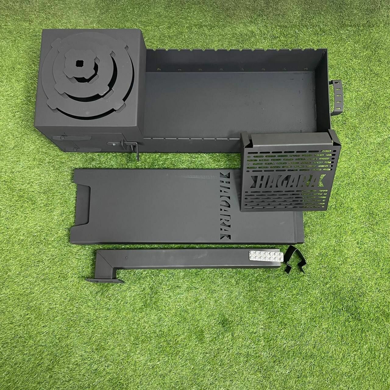 Мангал оснащен печкой для казана, что позволяет готовить разнообразные блюда на открытом огне. Это добавляет процессу приготовления пищи особый шарм и делает его более удобным.