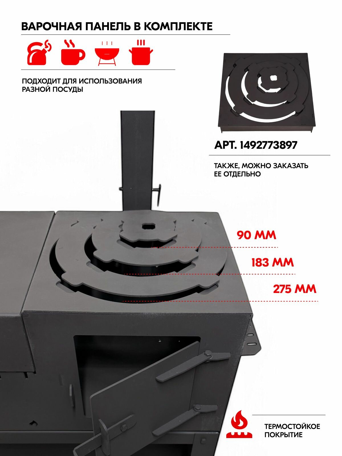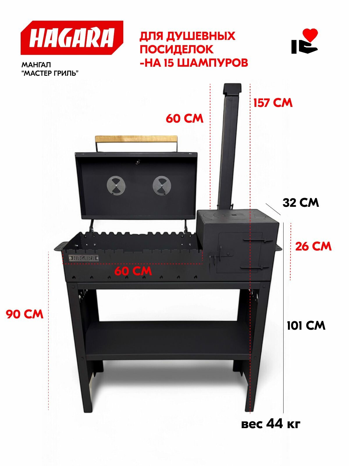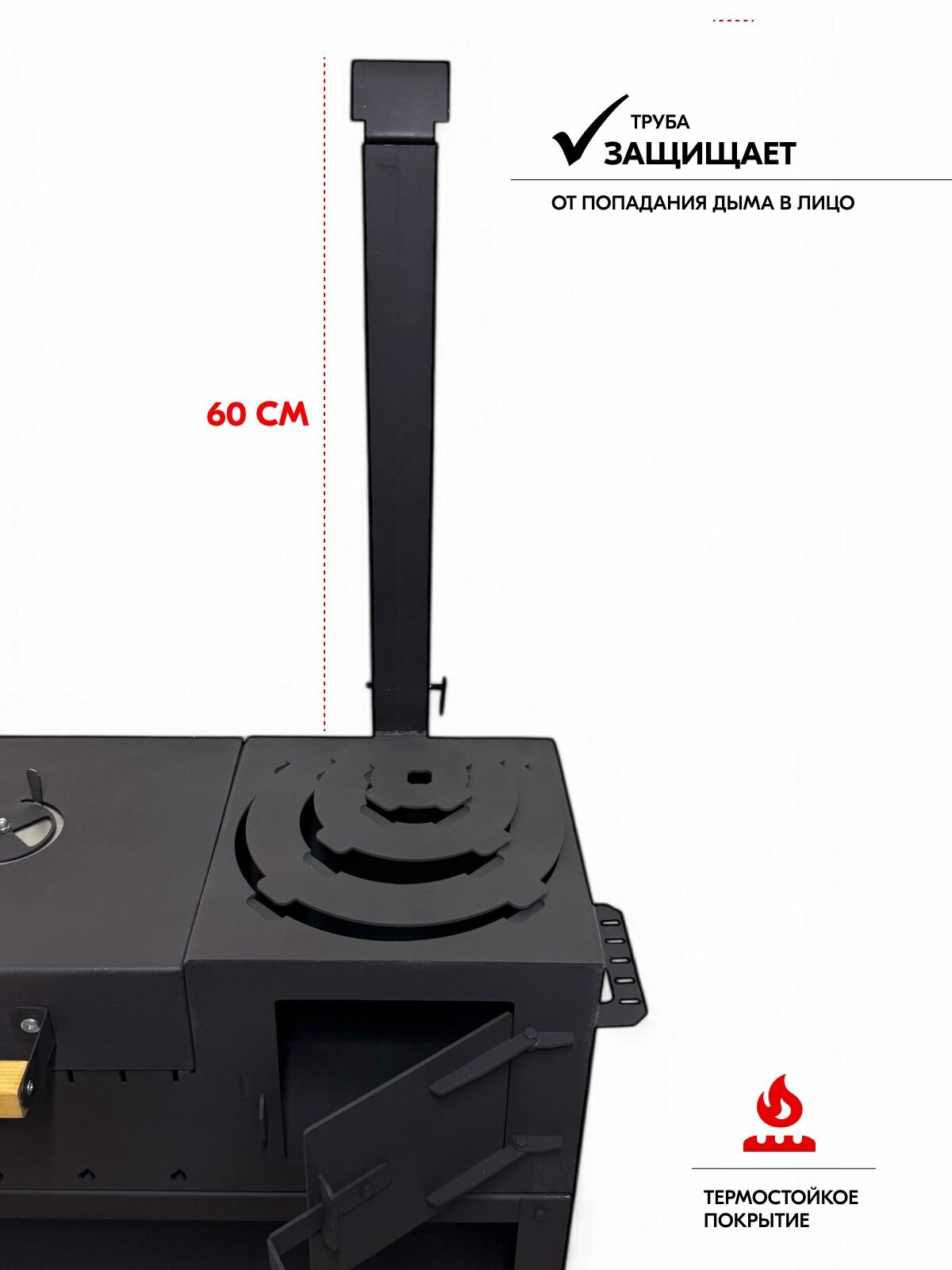 Угольный гриль с крышкой, печкой под казан и полкой для дров – идеальный помощник для готовки на открытом воздухе!