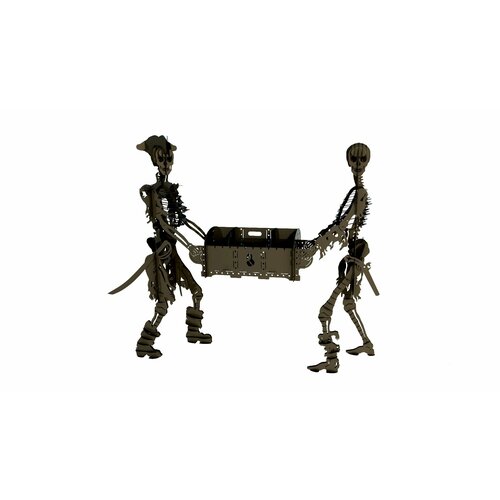 Мангал скелеты (скелеты держат мангал, пираты держат мангал-сундук с золотом). Крышка мангала съемная. Размеры ДхВхГ 2015х1656х612 мм. Толщина дна жарочного ящика 6мм, стенки жарочного ящика 4мм. Толщина остальной конструкции 2мм. В случае необходимости, дно мангала заменяемое.