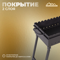 Мангал покрыт огнеупорной краской, которая выдерживает температуру до 1200°C. Это гарантирует безопасность использования и защиту от коррозии.