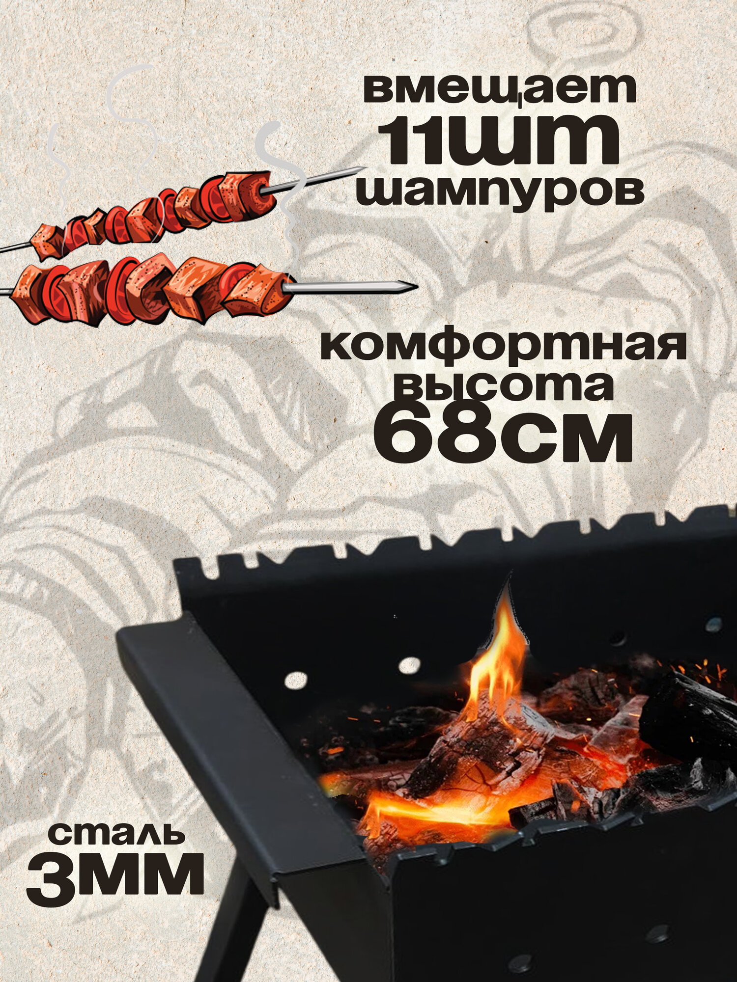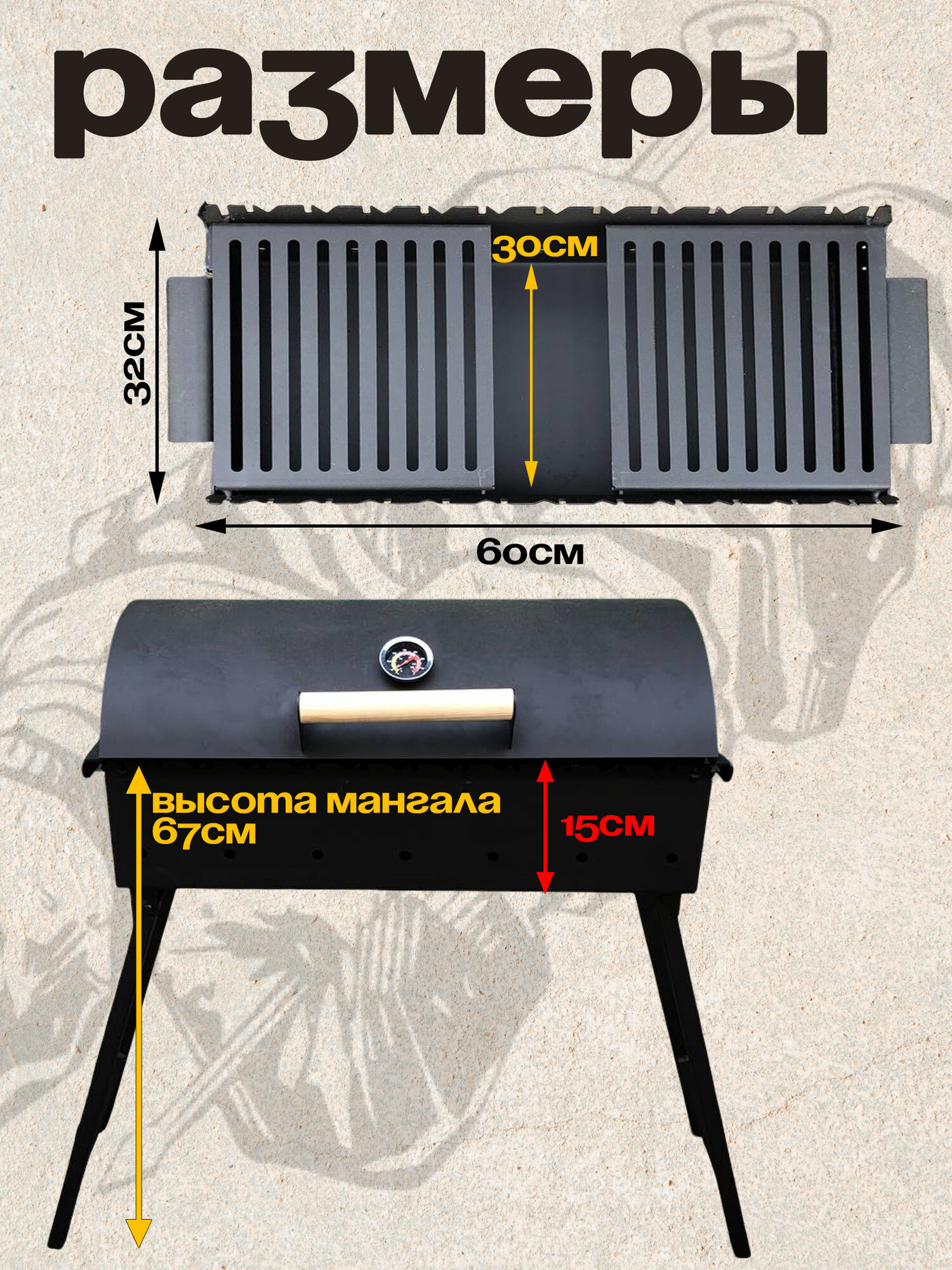 Мангал складной 600 мм. с крышкой барбекю, термометром и полками-решётками гриль, сталь 3 мм: сравнение цен, характеристики, фото, актуальное наличие и цены.