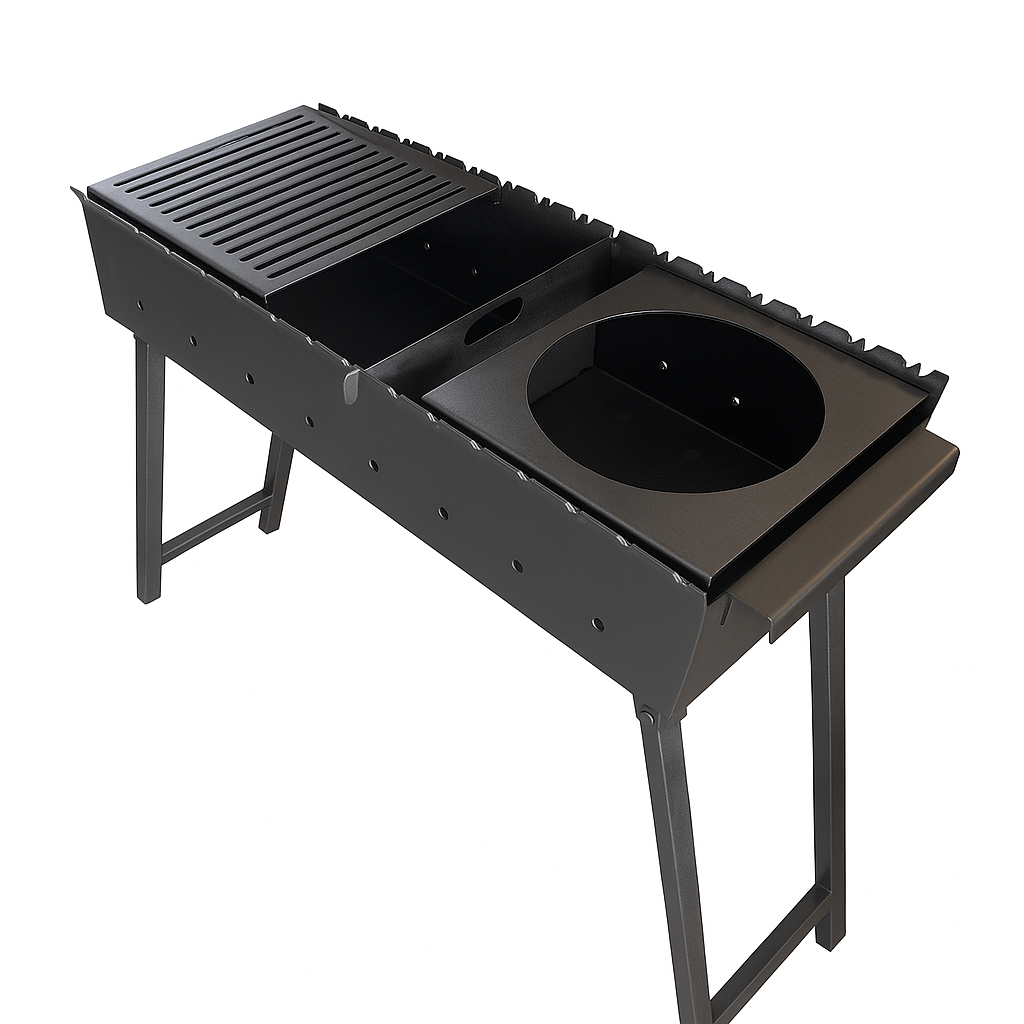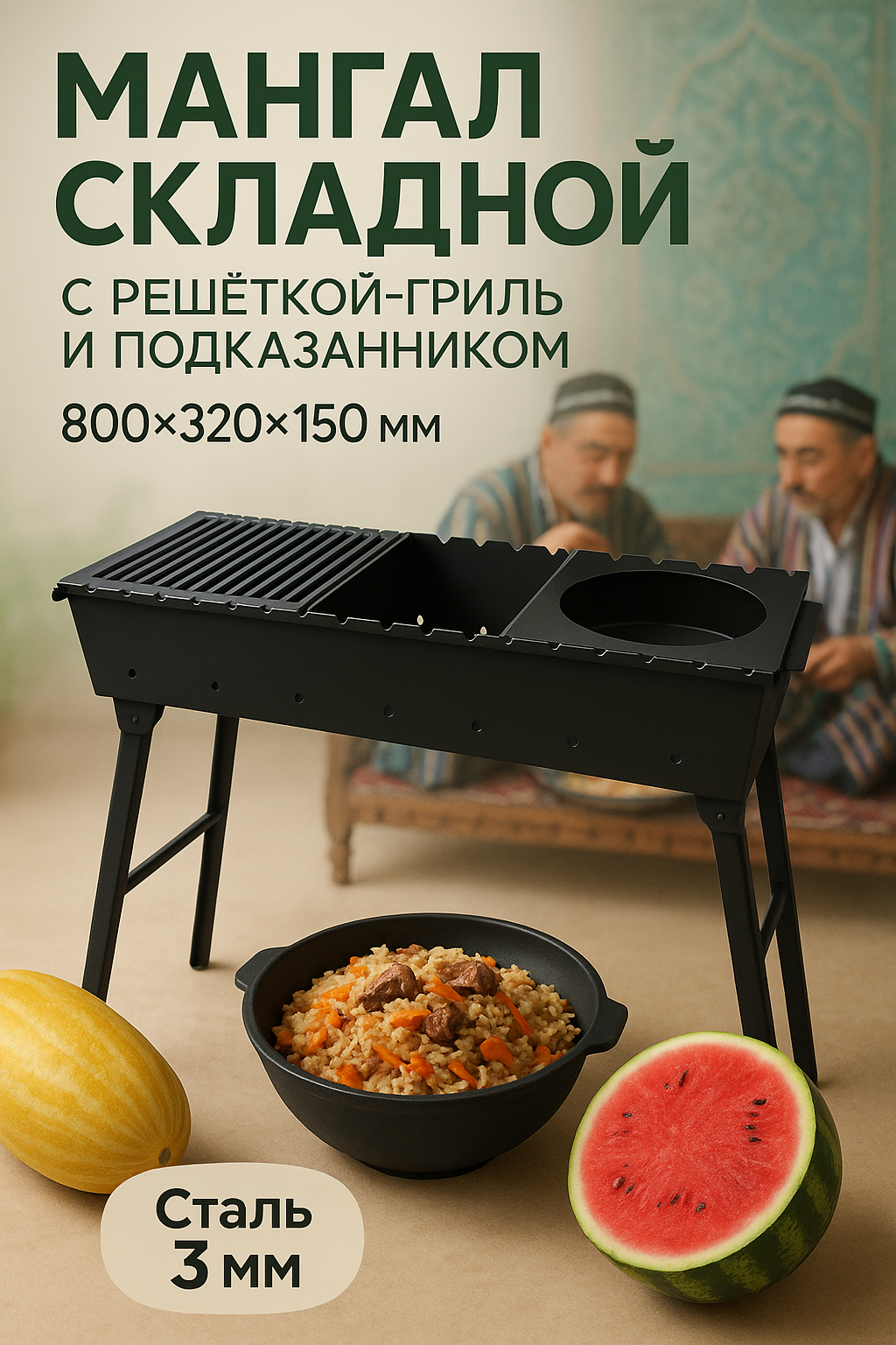 Мангал складной 800 мм. с полкой-решёткой гриль и полкой под казан, сталь 3 мм.: сравнение цен, характеристики, фото, актуальное наличие и цены.