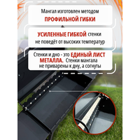 | Дополнительная информация | В комплект входит: жаровня мангала, 2 ножки, крышка с термометром, 2 боковые подставки под посуду, гайки и болты, ключ и шестигранник |