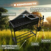 Складной мангал для дачи от GRILL MASTER обеспечит невероятное удобство в приготовлении вкуснейших и сочных блюд. Жарка на костре и в казане, вместимость до 11 шампуров, усиленные края, дровница, кованый узор, простая сборка и разборка, мощная толщина на 2,2 мм, усиление профилем на 2 мм, термостойкая краска, соответствие ГОСТ, совок и кочерга в подарок – всё это сделало изделие прекрасным решением для любых пространств, где хочется готовить быстро и с комфортом!