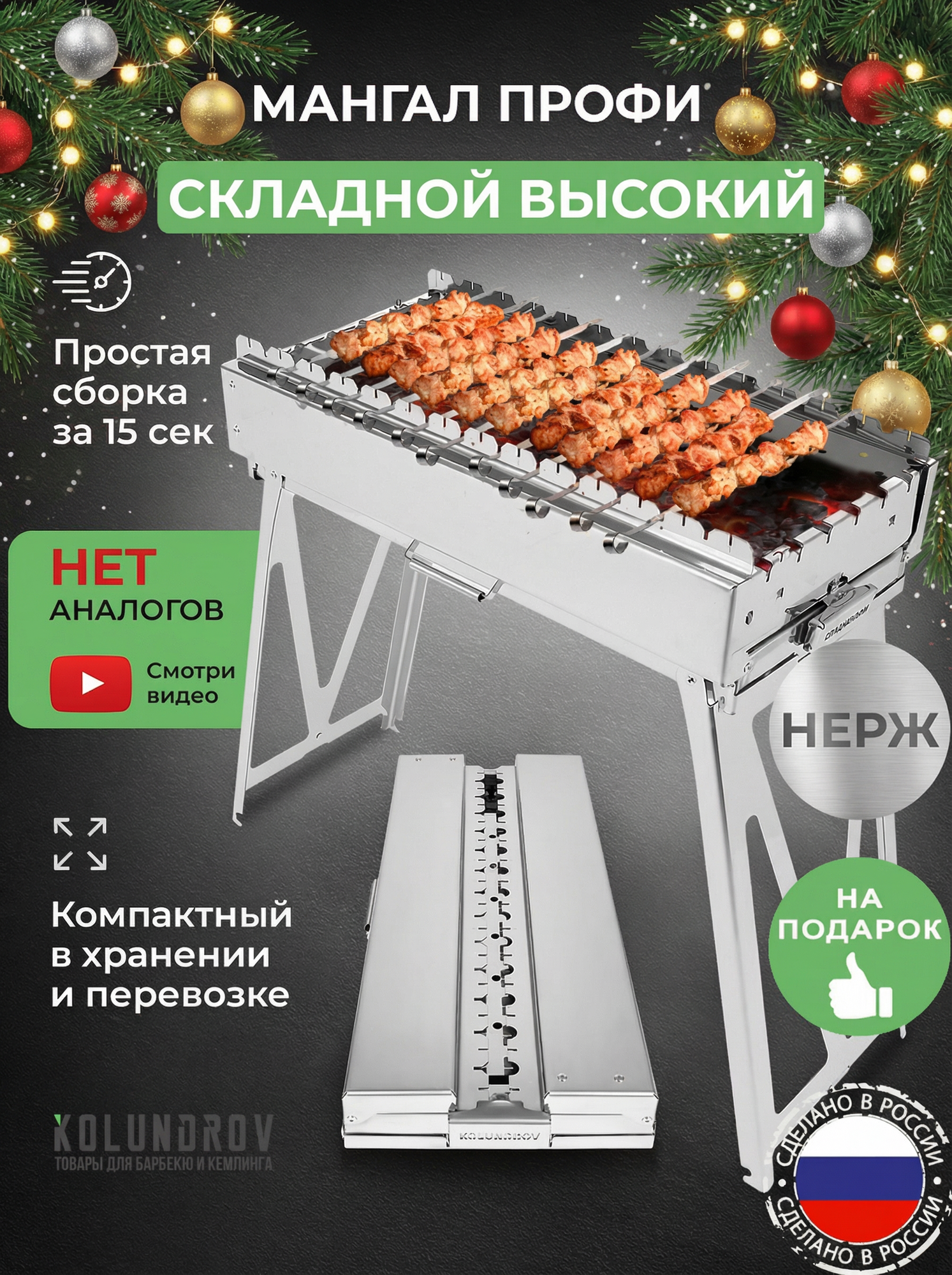 Мангал из нержавеющей стали Колундров - это необычный подарок мужчине, папе, мужу на Новый год, 23 февраля, день рождение, который удивит самых требовательных ценителей шашлыка и барбекю.