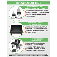 | Дополнительная информация | габариты в сложенном виде (ДxШxВ): 46×32,5×9,5 см; размеры жаровни 44 × 30 × 16 см; заклепки: ø5/9 мм сталь а2 (нерж); особенности: 2 положения рабочей высоты мангала, система вентиляции жаровни, регулировка жара с помощью заслонок, количество одновременно размещаемых шампуров: до 6 в продольном положении и до 8 - в поперечном, возможность установки решетки гриль; регулируемая высота: 44 и 72,5 см |