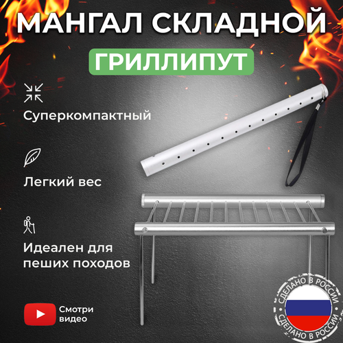 Раскладной компактный походный мангал-гриль "Grilliput" для дачи, туризма, рыбалки, охоты и пикника.