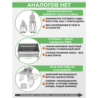 Несколько простых движений и раскладной мангал из нержавейки полностью готов к использованию. Больше не нужно корячиться на коленях, совмещая неудобные пазлы или скручивая болты разборных конструкций.