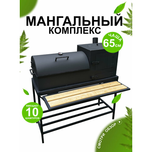 Также мангал оснащен печью . Печь в мангале — это многофункциональное дополнение, которое значительно расширяет возможности приготовления пищи на открытом воздухе. Она позволяет не ограничиваться только приготовлением шашлыков, а экспериментировать с разнообразными блюдами.