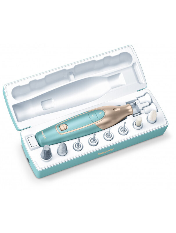 Для красивых и ухоженных рук и ног. Подстригание, подпиливание, полировка ногтей, удаление ороговевшей кожи, кутикулы, а также мозолей и натоптышей — 10 высококачественных насадок для маникюра и педикюра на профессиональном уровне. Практичный футляр для хранения одновременно служит зарядной станцией для маникюрного прибора, а также идеально подходит для поездок.